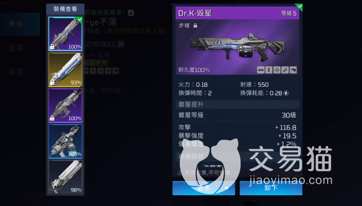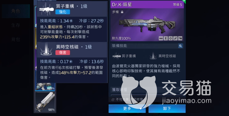 该武器的全名应该是叫做dr.k毁星,除了能拥有两者不同的战斗形态以外,它的射击速度也是非常快的,在高密度的射击下,其对于玩家的耗能方面消耗却很小,这是它的主打优势,也是很多朋友关注它的原因之一。