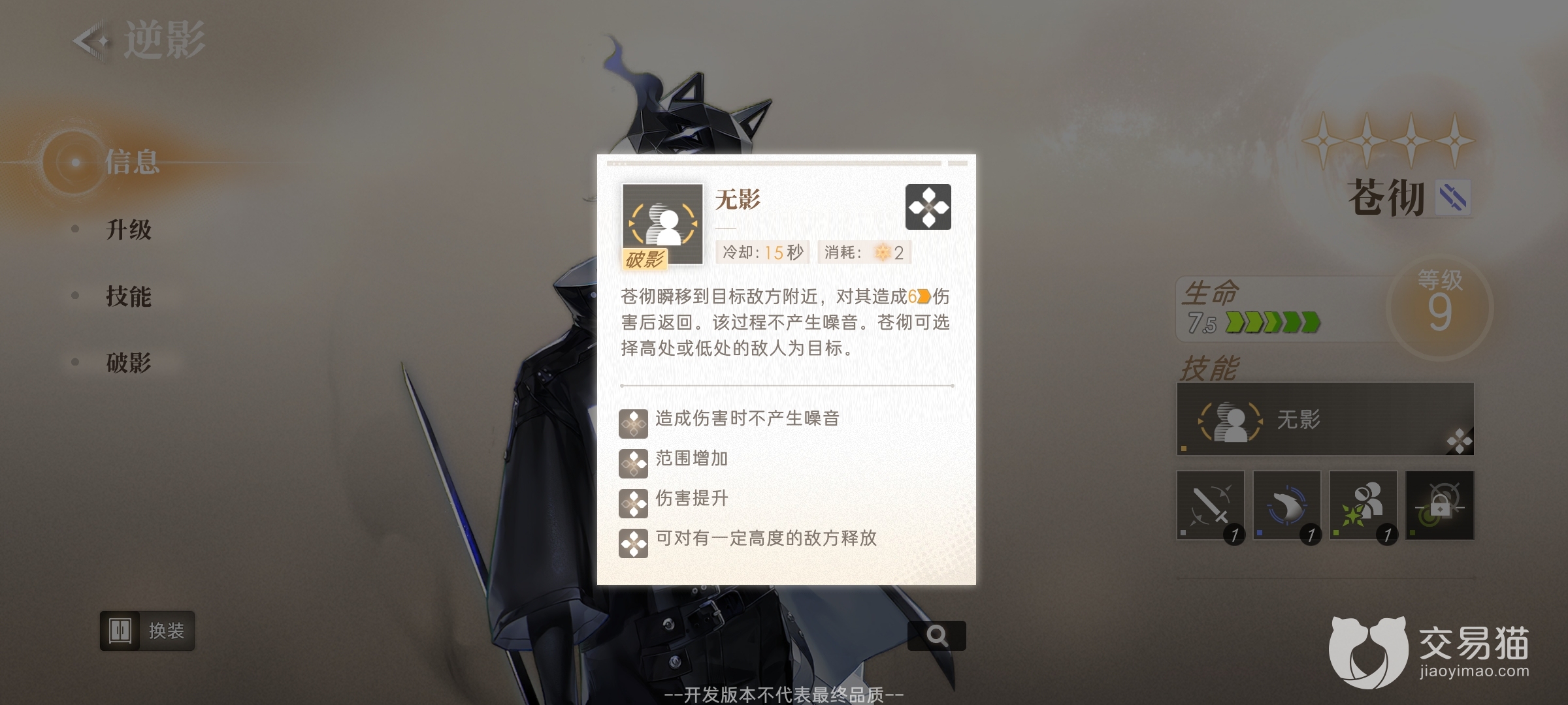 这个人物的品质还是四星的,其大招在对局中是非常好用的,即便是被敌人发现了,只要使用这个大招也能先手将其击败。看到此处你觉得逆光潜入苍彻技能怎么样呢。