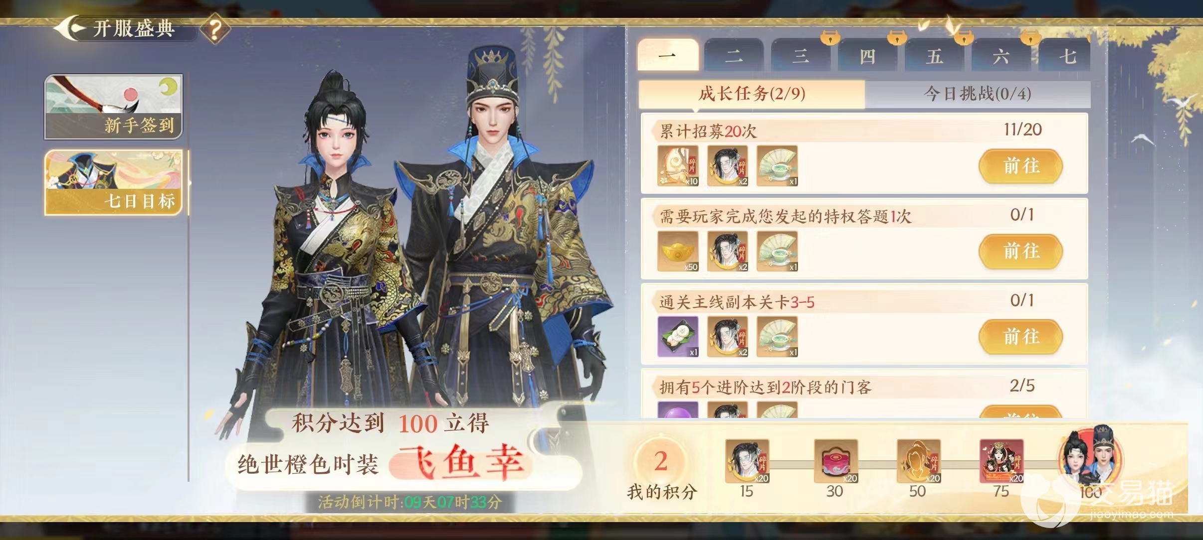 绝世橙色时装有一个非常好听的名字,名叫飞鱼幸,这个时装要求玩家连续签到七天并且得到积分才能兑换,从活动开启之日零时开始倒计时,玩家们需要完成各项任务才能够得到积分,兑换这款飞鱼幸礼包需要一百积分。