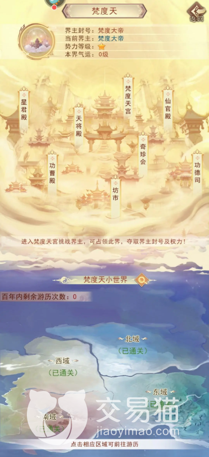 其中最顶级的也就是界主,基本上每一张地图只能拥有一个,需要玩家们打满进度后上任。界主每一天可以召开一次法会来获取修炼方面的加成,除此之外,也可以获得最多的功德奖励。仙官则是由界主进行任命,不能被挑战,但可以被贬值。星君则是全区进行争夺,可以被挑战。天降为最基础的官职是低保级别的,基本上只要有了境界便可以担任,不能被挑战,也不会被贬值。