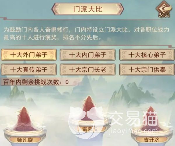 在该玩法中有一个叫做宗门大殿的地方,在这里大家能够看到所加入门派的掌门以及重要的弟子,它是一个负责该门派职务的地方,职务的高低主要是按照贡献点以及境界来进行提升的,门派贡献值达到一定数量之后,就可以进行申请,还可以挑战掌门哦。