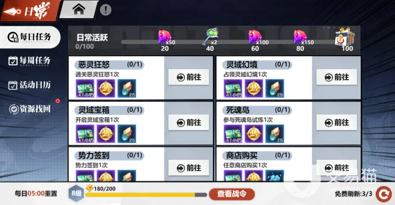 其次就是每天的每日任务,这是必须做满的任务,不仅奖励非常丰富,同时还能够积累日常的战令,如果遇到比较困难的日常任务,也是可以通过刷新替换的。