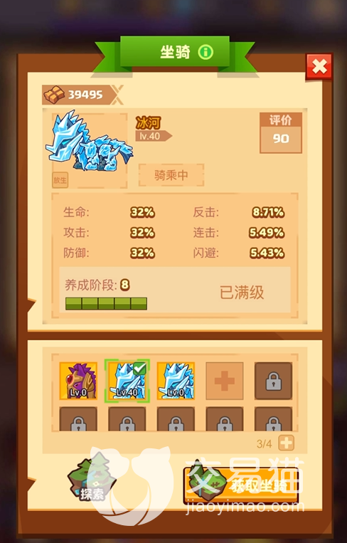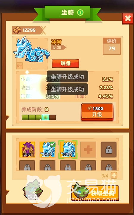 ①冰河:首先从评价来看,其评价高达90点,哪怕放在一众金马中都是首屈一指的,然后其外形通体晶蓝,身上被一层层冰锥覆盖,看上去非常立体且帅气,所以但从评价和外观来看它绝对不输其他马匹,另外其属性构成,除了基础的攻防血和闪避以外,另外还多出了两项反击与连击,这就意味着它不仅可以主动出击,在被敌人攻击的时候也是有一定几率还手的,而且可以看到它只是培养到四十级的时候这个反击概率就已经达到了8.71%,这足以说明它的反打能力有多出众。