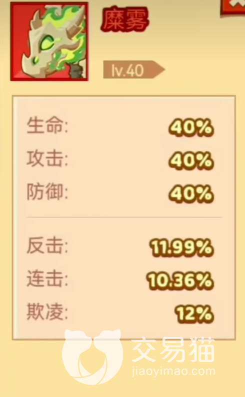 ③糜雾:这只是游戏内为数不多的红马,它本身属于品质比金色还高一档的存在,所以光从攻防血三项基础属性就可以看出比金马殷实,另外它虽然少了一条闪避,但却多出了反击,连击和欺凌三种罕见的属性,其中欺凌是最为稀有的,它可以在敌人半血的时候增加自身的伤害,这对于收割残血会有十分显著的帮助,而且包括欺凌在内的三种罕见属性本身数值也是比较高的,实战中的作用绝对肉眼可见。