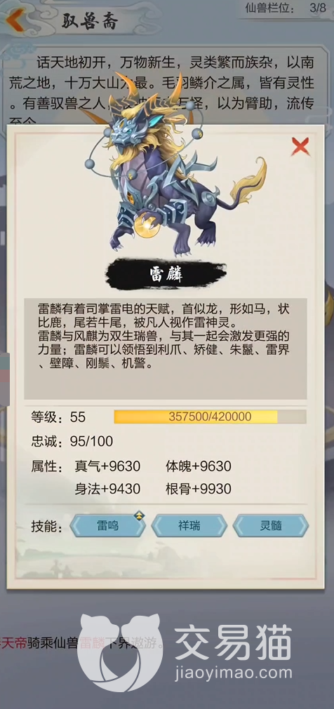 仙兽:当玩到一定程度之后,驭兽斋也会进行解锁,这些仙兽玩家最多可以带八个,不过因为位置有限,所以上阵的仙兽一定要精益求精,游戏不时会推出一些限定活动,其中的仙兽无论是属性还是技能效果都是远强于一般仙兽的,所以如果囊中宽裕的话可以尝试去氪一波,入手仙兽后相当于对玩家队伍起到一个额外的补强,非常实用。
