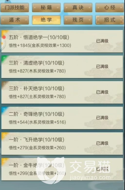 升级思路:游戏内有很多地方需要升级,最典型的就是八大功法,这里推荐大家优先提升绝学和残页,因为它们不仅能够提升悟性和机缘来帮助修炼,而且还可以间接加强各属性灵根的效果。除此之外,随着你对这两种功法的不断提升,你的修炼效率和灵气获取速率也会同样的攀升,这些都可以帮助玩家更快的提升自己的实力。