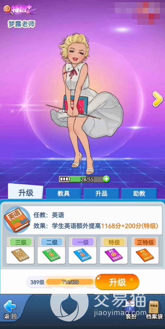 培养教师的话则一共有“升级”,“升品”,“教具”和“助教”四个板块,其他的前期完全不用考虑,只需要一股脑升级就好,你的教师中至少需要有两位角色将所授课程升到正特级,不然的话学生成绩提升的效率会变得很慢。