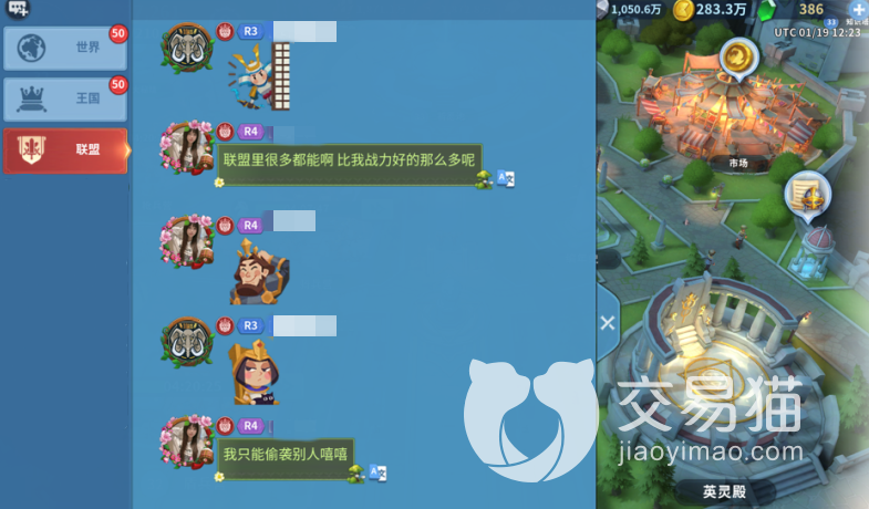 王国频道中的内容略微有些乱,基本上被各种攻击信息和吵架信息充斥,属于游戏中交流最激烈的地方,不过也有一些人会在这里进行非常直接的抢人大战,毕竟王国频道中都是一个联盟的人,离的近,挖过来可以直接使用。