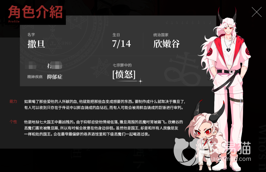 作为以七宗罪主题为游戏背景的地狱有什么不好手游,登场角色当然少不了著名恶魔撒旦,很多玩家都想知道地狱有什么不好撒旦怎么样?作为初始可攻略的4名恶魔之一,撒旦人气值很高,接下来小编给各位玩家带来撒旦角色介绍,带各位玩家提前了解撒旦,看一下他有什么能力与个性吧。
