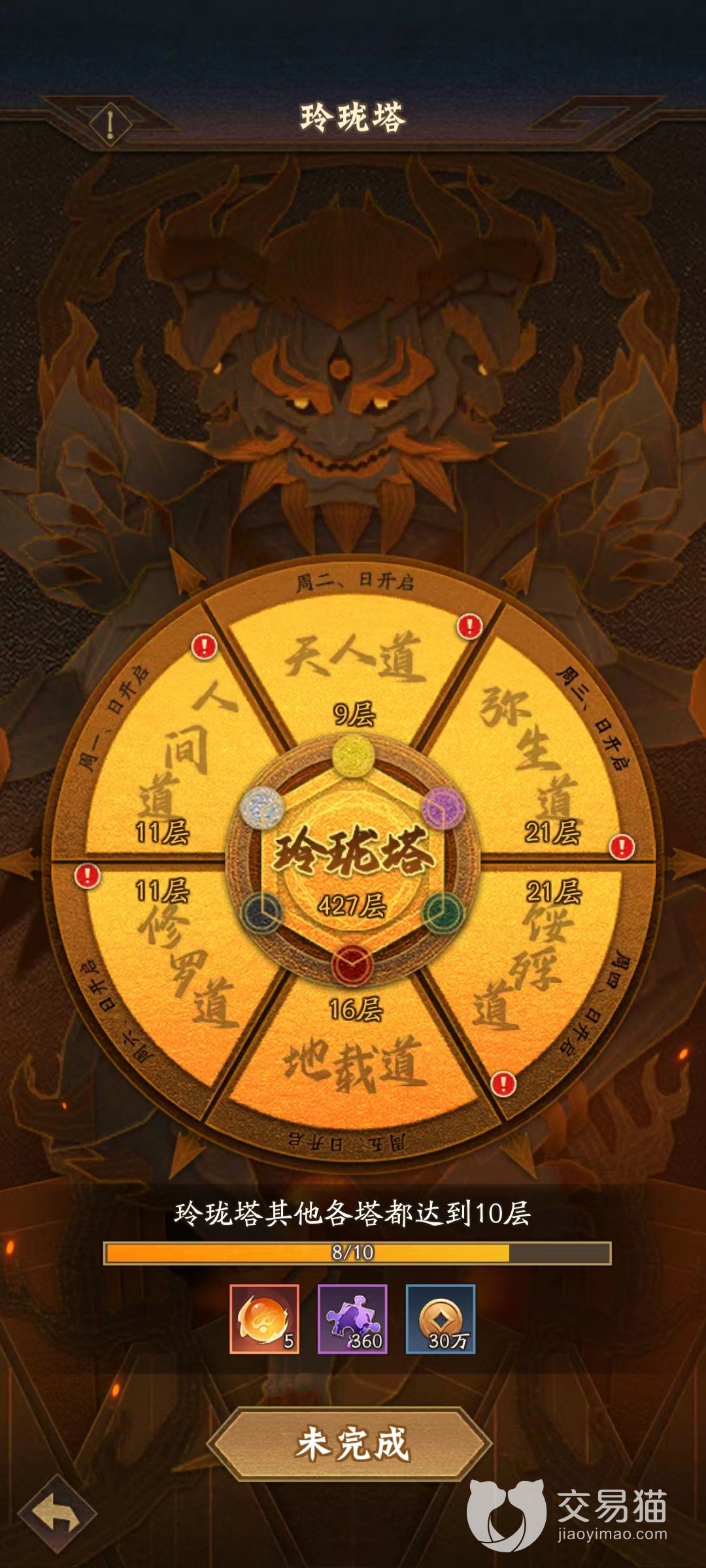 首先地载道的位置是玲珑塔的副塔中,开放的时间是每周的星期天和星期五,小伙伴们千万不能错过开启的时间,否则就会等待1周的时间才能够再次挑战。