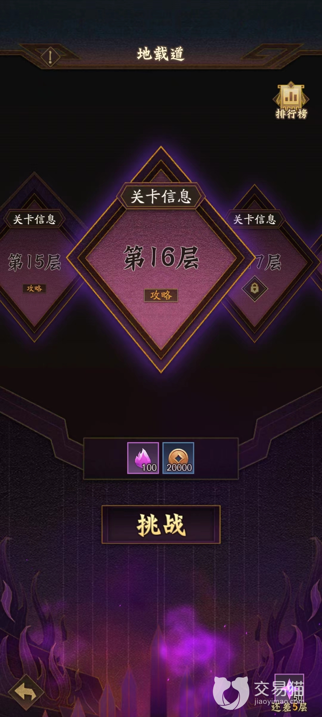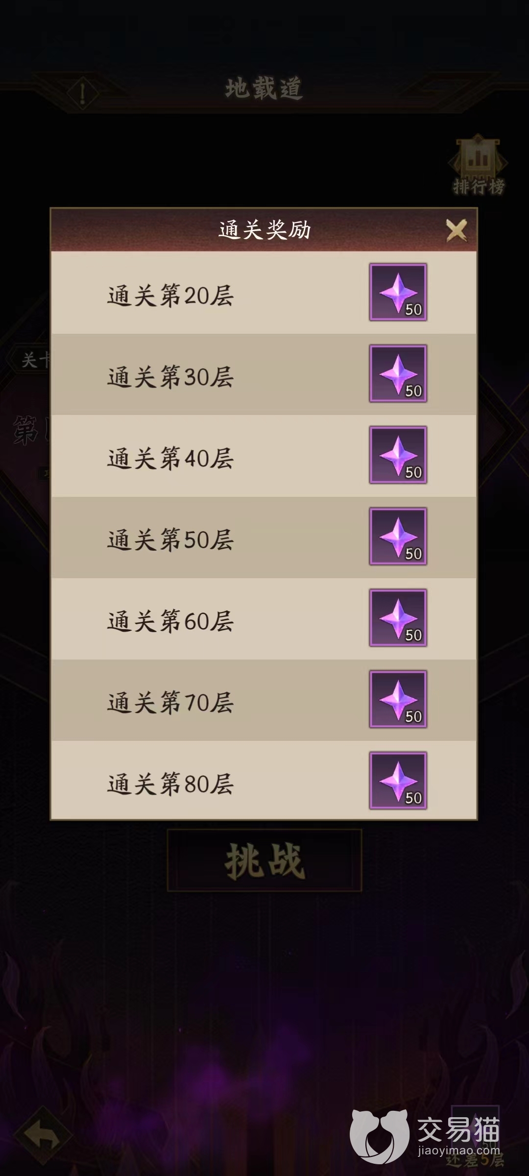 挑战地载道能够获得紫气和铜币的资源奖励,并且每次通关10层之后,还能够额外获得星芒、日精等奖励,帮助小伙伴们更快的升级天相,同时通关时间越快的玩家,还可以在排行榜上争夺名次,并且后续通关的小伙伴还可以观看到视频,提高自己的知名度。