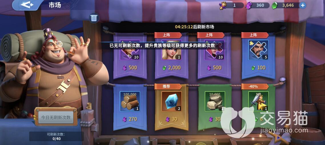 首先,市场的解锁主要体现在玩家的发展程度上,主城等级越高的情况下,各位就可以直接建造一个市场建筑物,随后就可以进入到市场当中去购买想要的道具了。并且,也会为玩家提供最多40次的刷新机会,而免费的刷新将在每天进行更新,以此让各位在其中可以找到更多符合需求的商品。