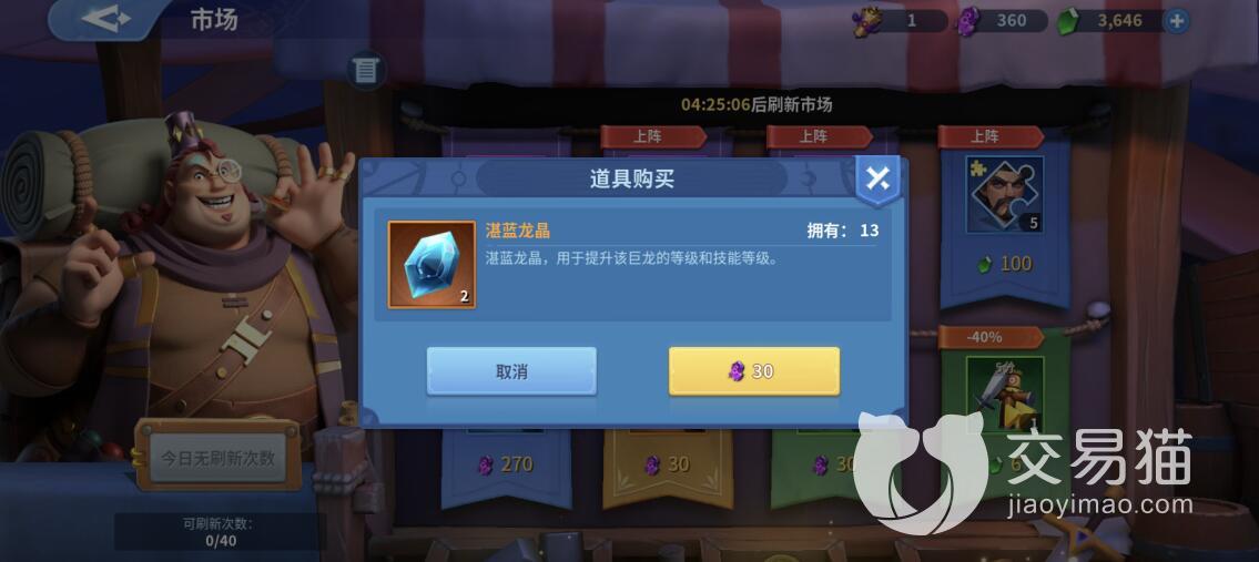 然后是打算培养巨龙的各位,目前市场内也会刷新出湛蓝龙晶这样的道具,购买之后可以直接用于提升巨龙等级。不过此类道具一般很难出现,所以需要大家配合刷新,这样才可以提高获得该道具的几率。刷新在使用完了之后,也可以通过炼金得到的道具兑换。
