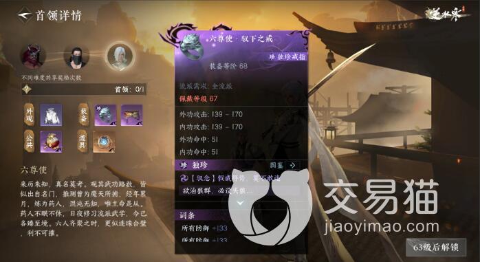 挑战药人六尊者可以获得独珍装备刘尊使驭下之戒,这个戒指可以对试图逃离掌控的目标造成更高伤害以及控制效果,非常擅长对付一些高机动性的目标。此外提醒大家击败药人六尊者有概率获得专属装备白夜拂雪时装哦,非常好看。这个装备适合各种职业来使用。