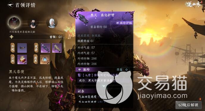 独珍装备分为多个部位,每个部位都需要玩家去挑战不同的boss获得,挑战黑天尊者可以获得独珍装备黑天·蛊化护臂黑天·蛊化护臂携带蛊毒,穿戴之后就可以获得蛊毒的保护,大幅度降低自身受到的远程伤害,并且还有大量回复气血的效果,这个装备就是远程流派的克星,穿戴之后不仅自愈能力强,而且自身受到的远程伤害非常低,大大提升了自身的生存能力。
