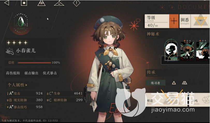 这套阵容中的核心输出是小春雀儿,可以在战斗中起到至关重要的作用。虽然输出类的角色很少,但小春雀儿能够对输出起到大大的提升作用。小春雀儿可以通过降低敌方的防御值来提高自己和队友的伤害。这个技能对于面对高防敌人特别有效,并且能够为队友提供一个较长时间内的攻击增益。