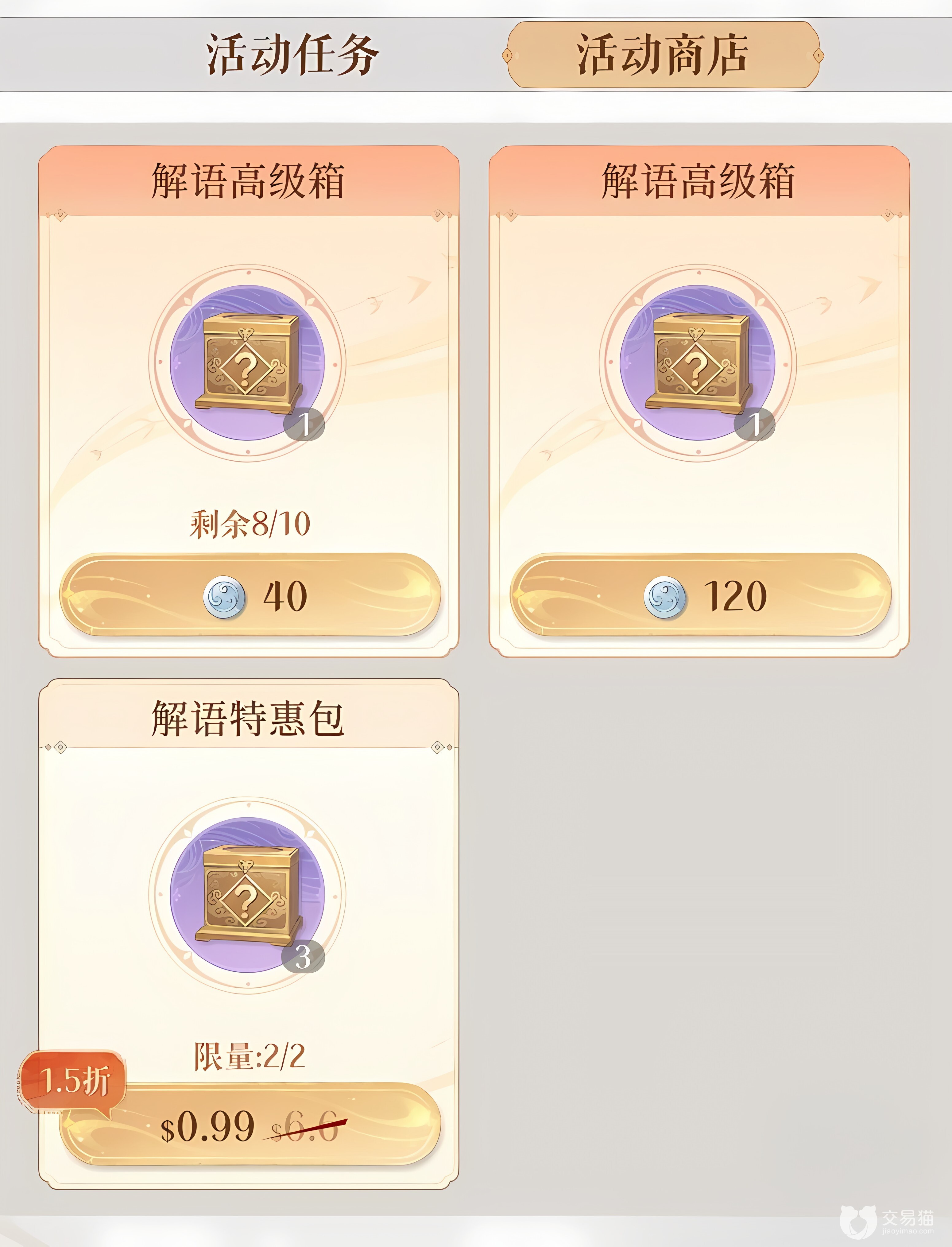 而且相信许多玩家也并不会每天都上线去完成任务,那这些完不成任务的玩家也可以通过花费40个银币来购买不同的宝箱,最后开出宝箱所获得的解余数量也是差不多的,玩家也不用担心每天完不成任务了,从这些内容也可以看得出来,获得结语的数量其实也是比较看运气的,并不是每次都能获得同样的数量。