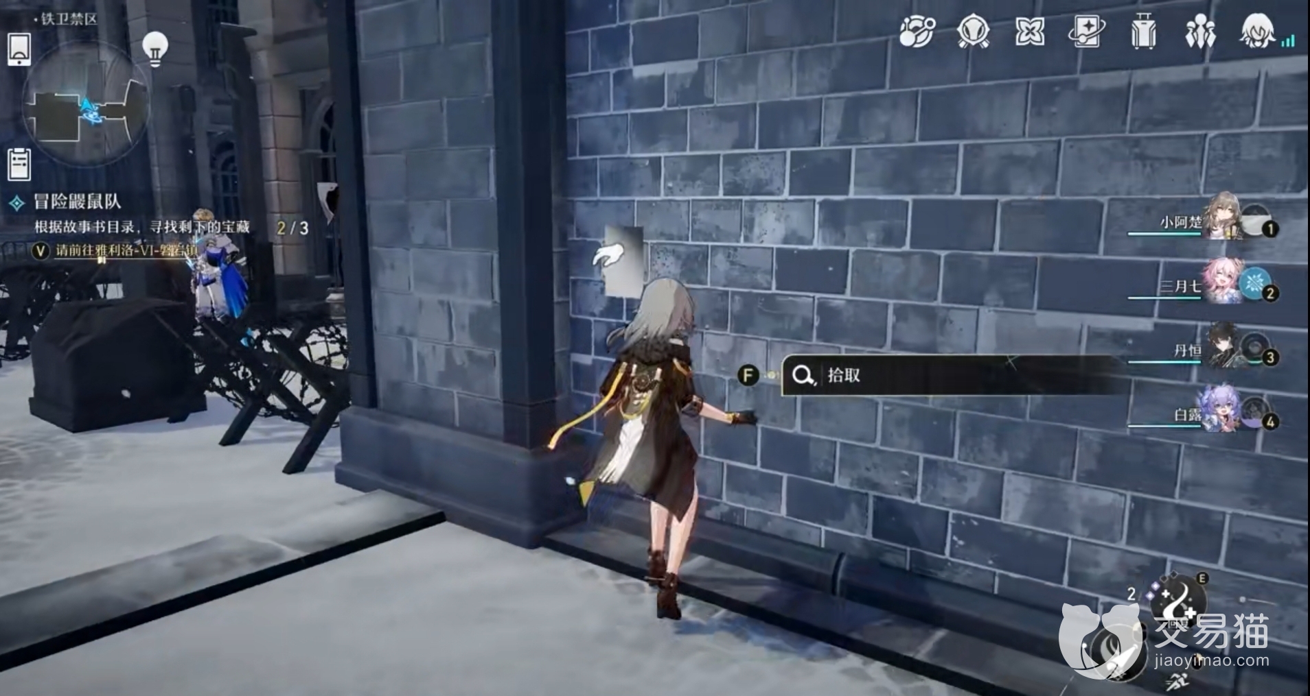 宝藏3,在铁卫禁区深处,从锚点传送过来后在城墙上找到第四张书页,根据书页“战地追迹”使战壕工事四个角落都各自摆放好三把枪。最后来到行政区,和尼古莱交接后任务就全部完成啦。
