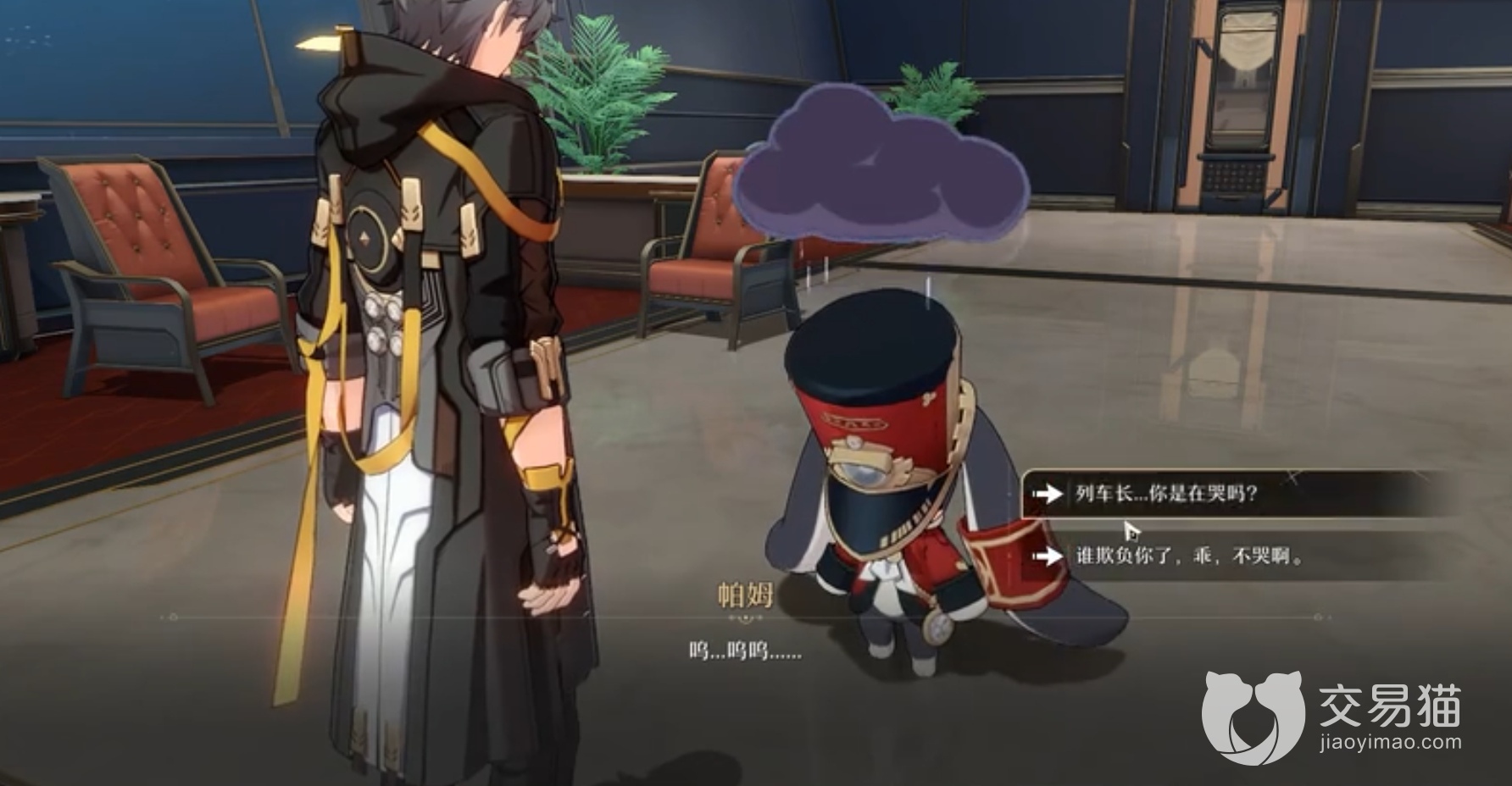 列车长帕姆在呜呜哭看上去很不开心,帕姆会问你,如果让你给帕姆打分,平心而论你会给帕姆打多少分,你有三个选项,一是满分,二是“能大负分吗”,三是“感觉还行,六分起步吧”。