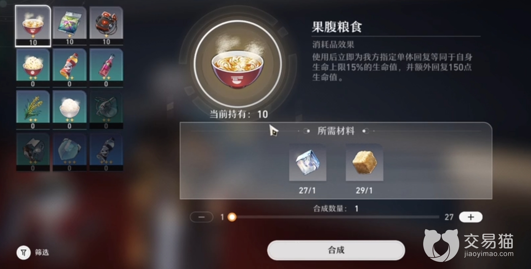 食物和药品能在战斗时带来增益或是回复血量、能量,大家进入万能合成机界面后任选一个进行合成就好啦,拿着合成好的找列车长复命,以后大家要记住准备好物资再出发,任务完成。