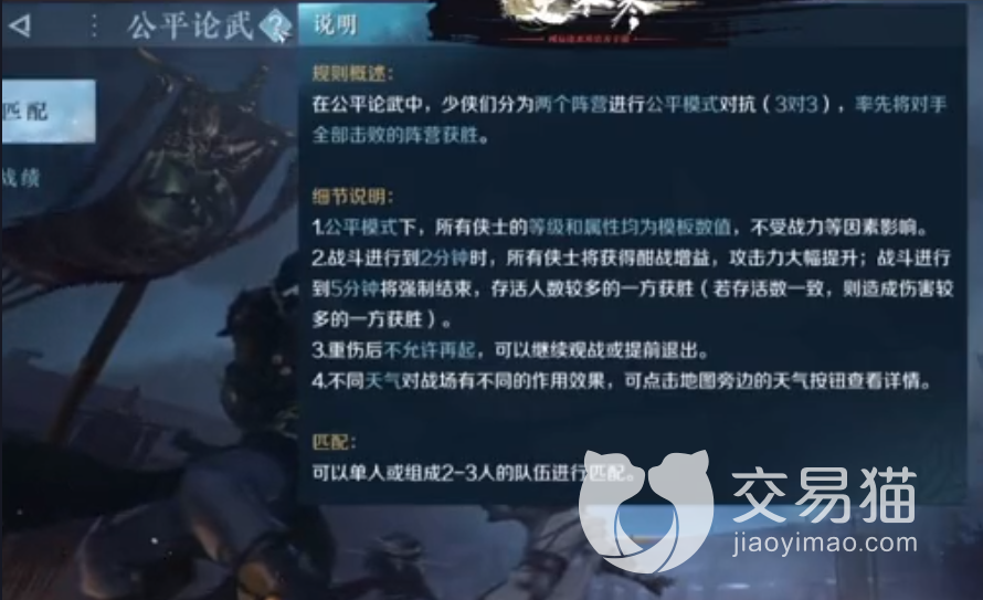 首先,所谓的公平论武自然是比赛人数相同。你可以选择自己一个人单排,也可以选择跟两到三个人一起组队。一个人单排会匹配到另外两个人组成三人队伍,所以如果你想玩组队赛的话,最好还是跟别人组队匹配。例如你玩的是素问这种奶妈类型角色,肯定要搭配一个强力的输出角色才好上分。