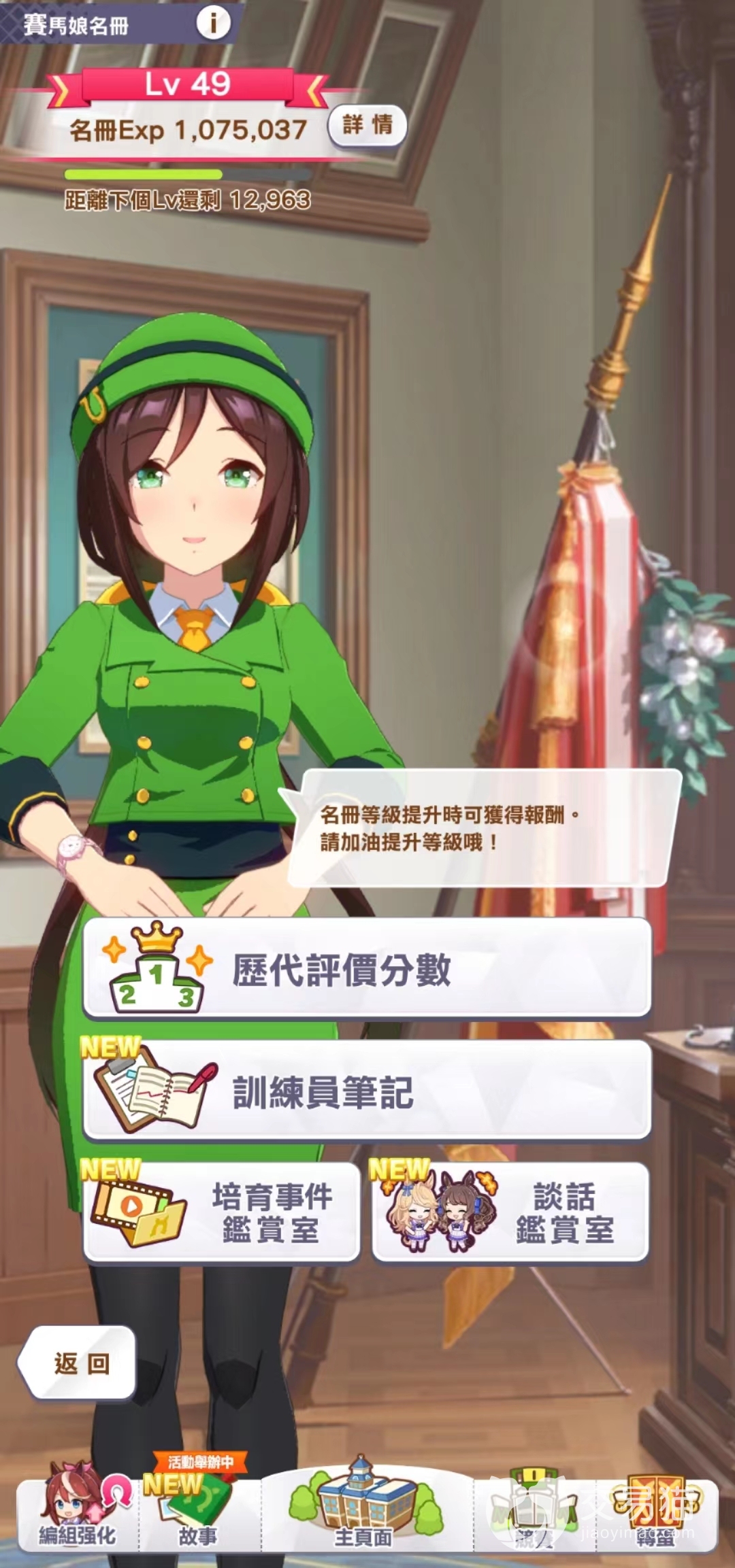名册会根据玩家游戏进度,收集到的角色,支援卡图鉴等慢慢提升等级,每升一次等级都可以拿到萝卜。