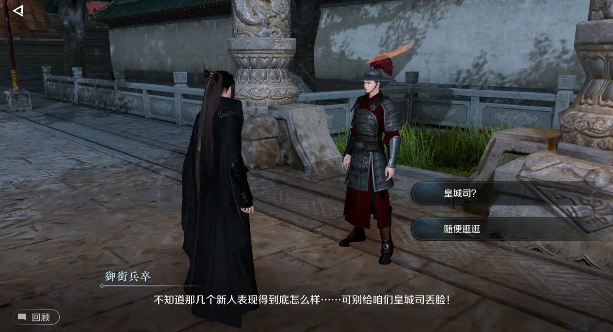 那些带有蝴蝶标记的人物与之对话会有概率触发有趣的小故事,例如委托你考察新人的卫兵。还有操着一口流利“英格利什”的外域商人,能在这种武侠游戏里听到英文还真是活久见了。
