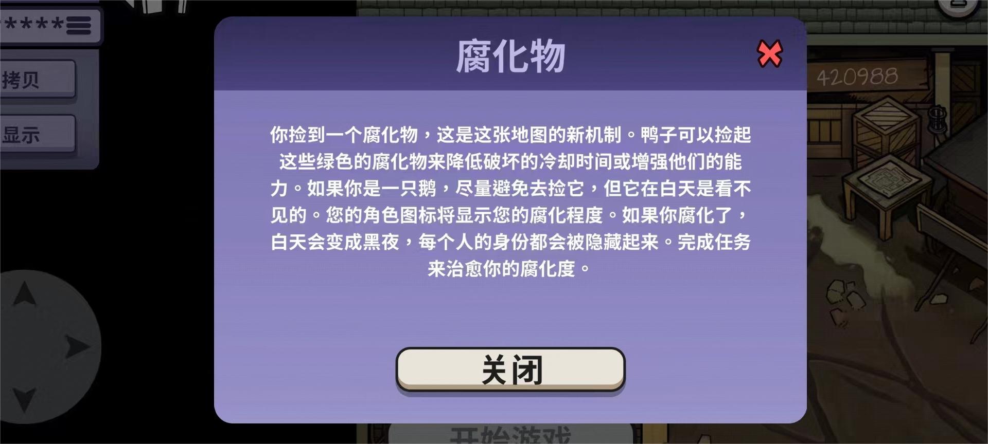 以上的内容就是本次小编为玩家们带来的鹅鸭杀腐化有什么用的内容,小编这里提醒下大家腐化物虽然是固定点刷新但是每一把都有可能会随机刷新不同的点,一旦这一把中这个点刷了腐化物那就会在这里固定刷新。