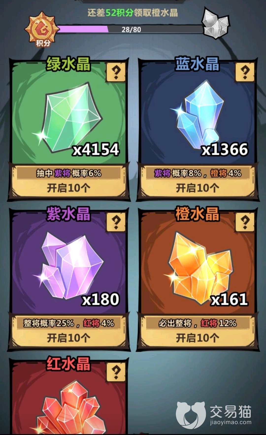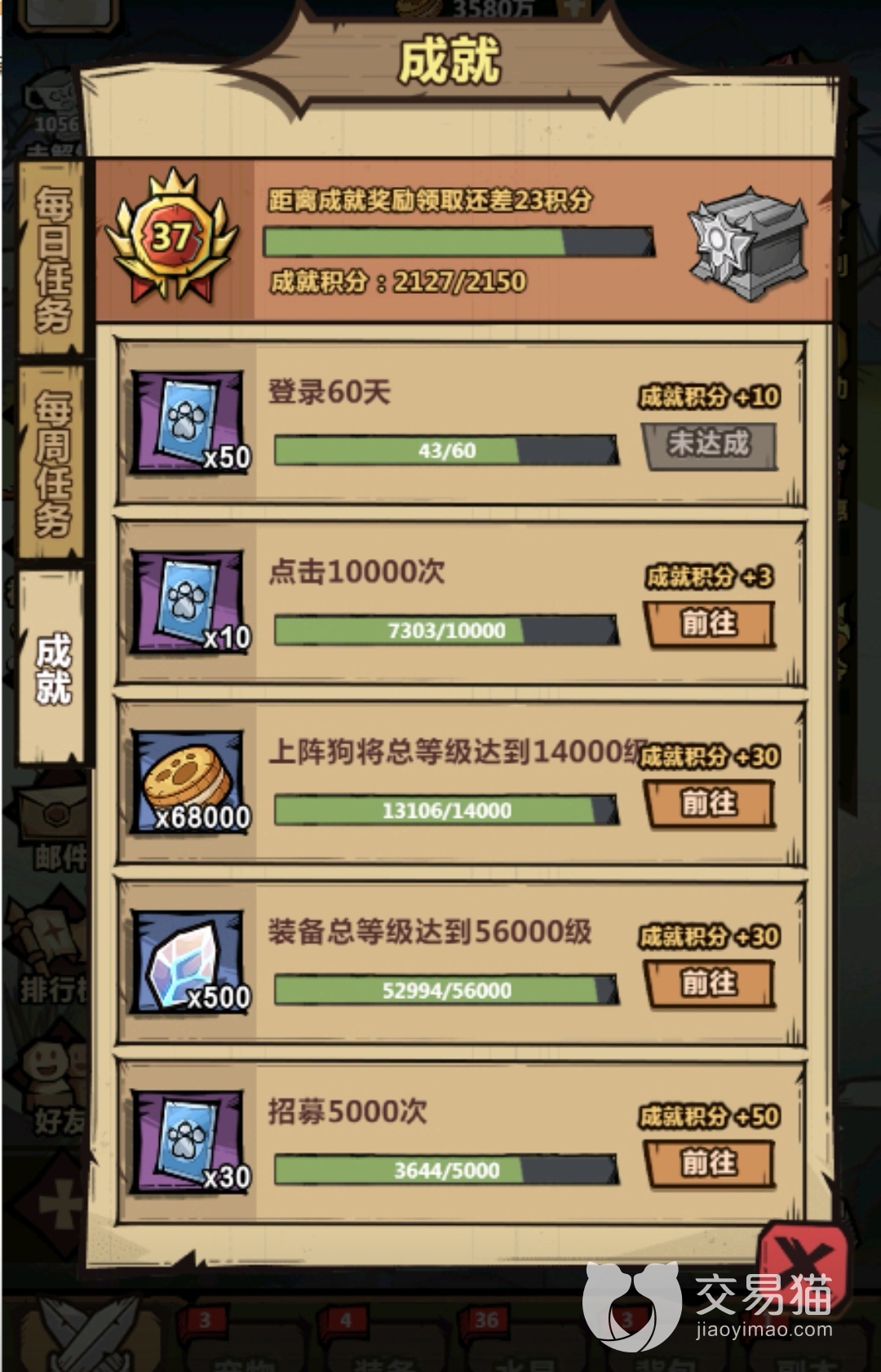 招募达标中是有五个达标档次的,第一档次是累计召唤五十次狗将英雄,铲屎官将获得五张招募契约、二十块随机红将碎片和十块绿水晶作为奖励;第二档次就是累计召唤一百次,达标这一要求的话就可以获得五张招募契约、二十块随机红将碎片的奖励以及十个蓝水晶;第三档次是累计召唤两百次狗将英雄,玩家能够得到十张招募契约,四十块随机红将碎片,还有十个紫水晶;第四档次是累计召唤三百次狗将英雄,奖励是十张招募契约、八十块随机红将碎片,还有五个橙水晶;第五档次是累计召唤四百次狗将英雄,有十张招募契约、八十块万能红将碎片、五个红水晶以及八个黄金勋章作为奖励。