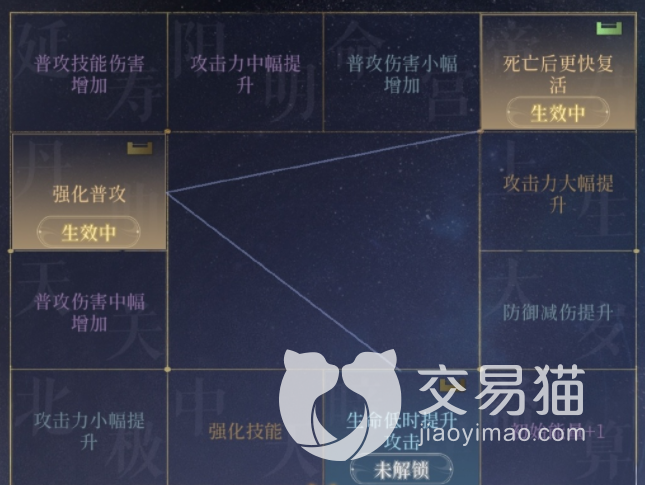 初始获得第一个干吉角色,随机刷新生成命盘,一共可以激活3个四会宫格,第一个孔是自动解锁的,后两个孔需干吉2000信赖值、修为六级解锁。如果随机刷出的初始词条不好,那么就要等30级以后进行逆天改命。