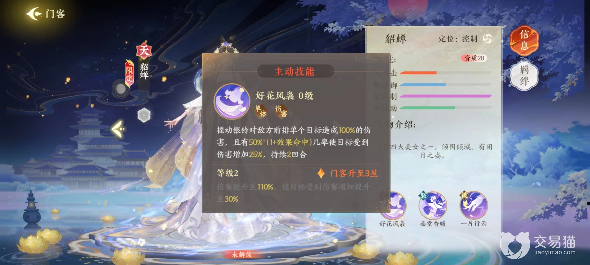 貂蝉在中国历史中号称四大美女之一,拥有倾国倾城容颜,在游戏中设计出的形象极其华丽,而且属于品级非常高的天品门客还是限定类型,这些都说明了拥有很高强度,今天就一起来看下扶摇一梦貂蝉技能怎么样。品级较高说明属性没有任何问题,但是在实战中技能效果才是最关键地方,还需要仔细研究。