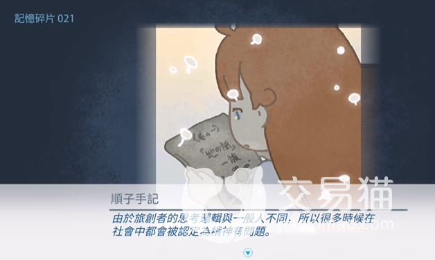 在游戏中,随着【小风】探索的地图越来越多,每次带好回来的记忆碎片也越来越多,关于游戏背景故事也在一点点的展开,在游戏中,记忆碎片分内了普通的记忆碎片和黑暗记忆碎片还有未知的记忆碎片29片,这些碎片搜集齐了会呈现什么样的故事。