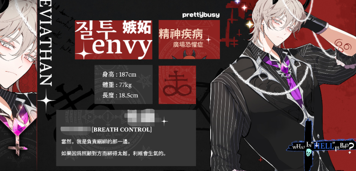 精神状态方面拥有强迫囤积症,也就是喜欢像仓鼠一样囤积东西,他的生日是6月9日,对应七宗罪的贪欲,统治国家塔塔鲁斯。