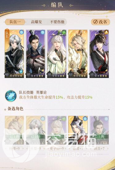 推荐阵容蝉姐、狮子喵、颜良、杨修和王粲。王粲可以放在队长的位置,选择此角色的队长,可提升15%的攻击力和生命加成。在命盘方面选择CD-1,狮子喵选择大招减伤,当然其他的角色就可以随意选择。