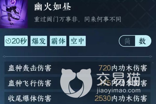除了召唤宝宝,九灵通过释放技能还可以积攒“蛊灵”,达到600点就能激活“爆灵”的状态,除了输出大幅提升外还解锁“幽火如昼”这个超强的输出技能。还有聚灵,可以延长有自身强化、护盾类的技能。