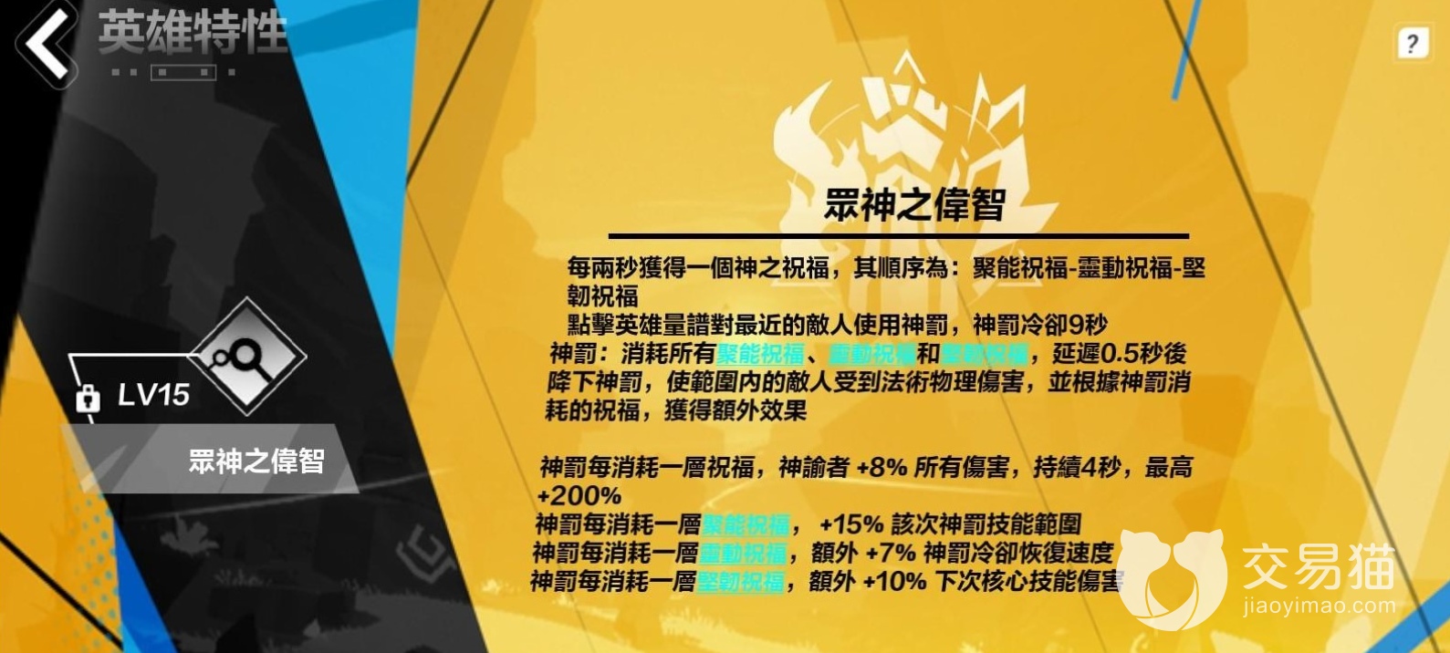 首先她的定位肯定是一个输出者,并且能够凭借各种强化来令自身获得额外的加成,从而使自己的输出上限和频率都更进一步,当然,这些效果都是和她的特性息息相关的,其特性的作用略显复杂,简而言之就是每隔两秒就会获得一层祝福,祝福的种类有三种,通过使用“神罚”技能可以消耗祝福来造成伤害,消耗的越多,伤害则越高,并且不同的祝福被消耗时还将分别提供额外施法范围,cd和伤害的加成。