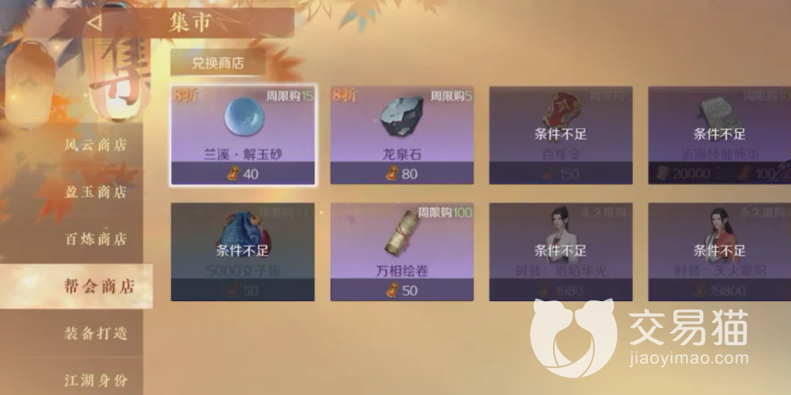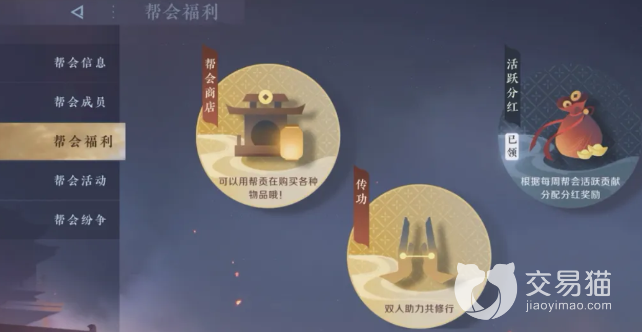 当你加入某一个帮派之后,就会解锁里面的帮会福利。福利又分为四种,其中就是一种商店,就要你去累计帮贡,才能购买里面对应的产品。例如各种矿石材料、玉石还有功法等,都是前期开荒所需要的物品。