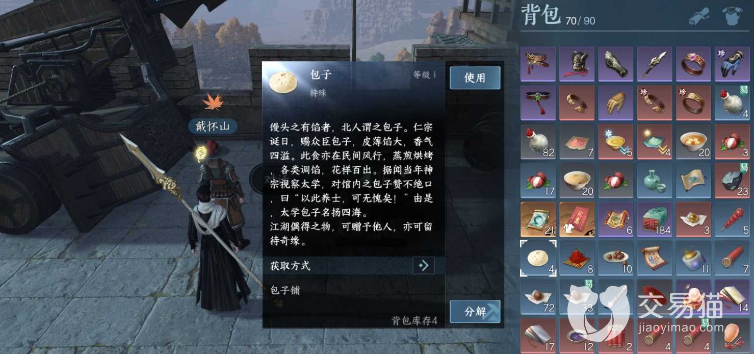 这个奇遇的坐标点是(524,458),在抵达目标位置之后会发现有一个名为“戴怀山”的npc,在他旁边吃包子馋死他就可以触发该奇遇任务了。没包子怎么办?当然是去坐标(378,856)的包子铺去买啦!后续跟着剧情走就能完成任务了,奖励会给到2本内功心法和1个包子。同时这个任务开启后还会触发后续的“跃跃欲试”任务。