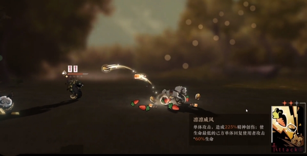 凛凛威风能让哒哒达利在攻击敌方的同时为单体队友回复血量,只不过该回复效果只会对己方血线最低的目标生效,玩家无法指定该技能所回复的角色。而且该技能的回复效果比较不明显,在一星时仅有40%的倍率,二星则是60%,等到了三星也不过是100%,与常规的回复角色有着比较大的差距。因此,玩家最好等该技能合成二星或三星后再去使用。
