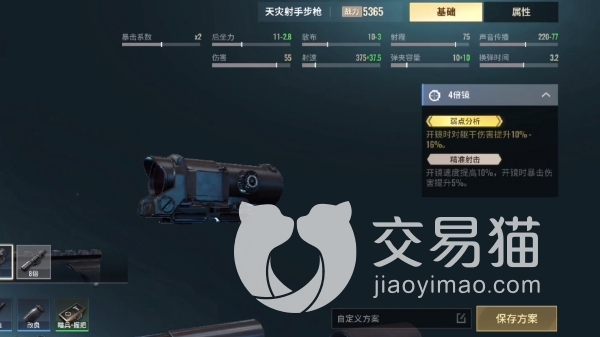首先,天灾的瞄准镜倍速选择有很多,但小编更推荐4倍,并搭配上弱点分析和精准射击这两条能直接增加武器伤害的属性。当然了,若是玩家害怕找不到敌人,也可以选用热成像目镜这条属性。
