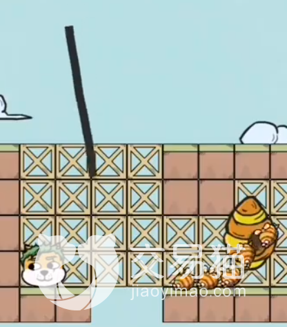 第八关中玩家会看到一个悬空的平台,这个平台区别于前面几关的平台,该平台很多地方都不相连,并且菜狗所在的位置也很尴尬,这关里菜狗会出现在最左边的两小格平台上,这个平台是一个L形的平台,这个L形的平台正常来说是无法放下障碍物的,所以很多玩家被这关卡住了。