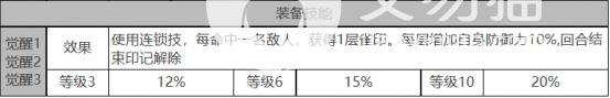 哒哒的连锁技能有三批层次,分别是3连击、6连击、13连击,使用的时候可以对2格或3格中的敌人造成不同的伤害程度。除了主动技能和连锁技能,哒哒还有一个装备技能,这个技能也是很有用的,每当哒哒击中一个敌人就可以获得一层雀印增加10%的防御力,这个技能和突破属性相加成可以获得很强的防御力。