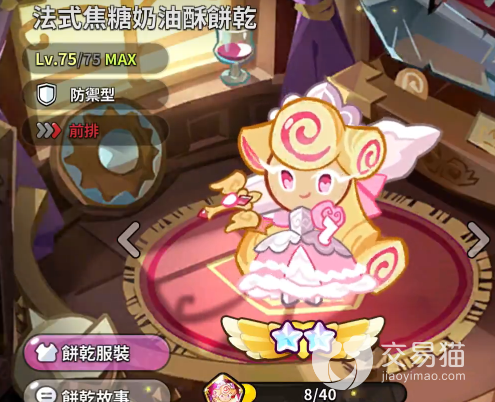 法式焦糖奶油酥饼干人的技能整体偏向功能性,可以给自己上增益buff,效果各异,系统给的定位属于防御型的前排,然后让我们看看她的技能效果,自身技能普攻可以叠加次数,并提升攻速,越打越猛,上限是10层,在受到减益效果时还会获得额外的免伤,应该是这个原因才把她定位到前排。