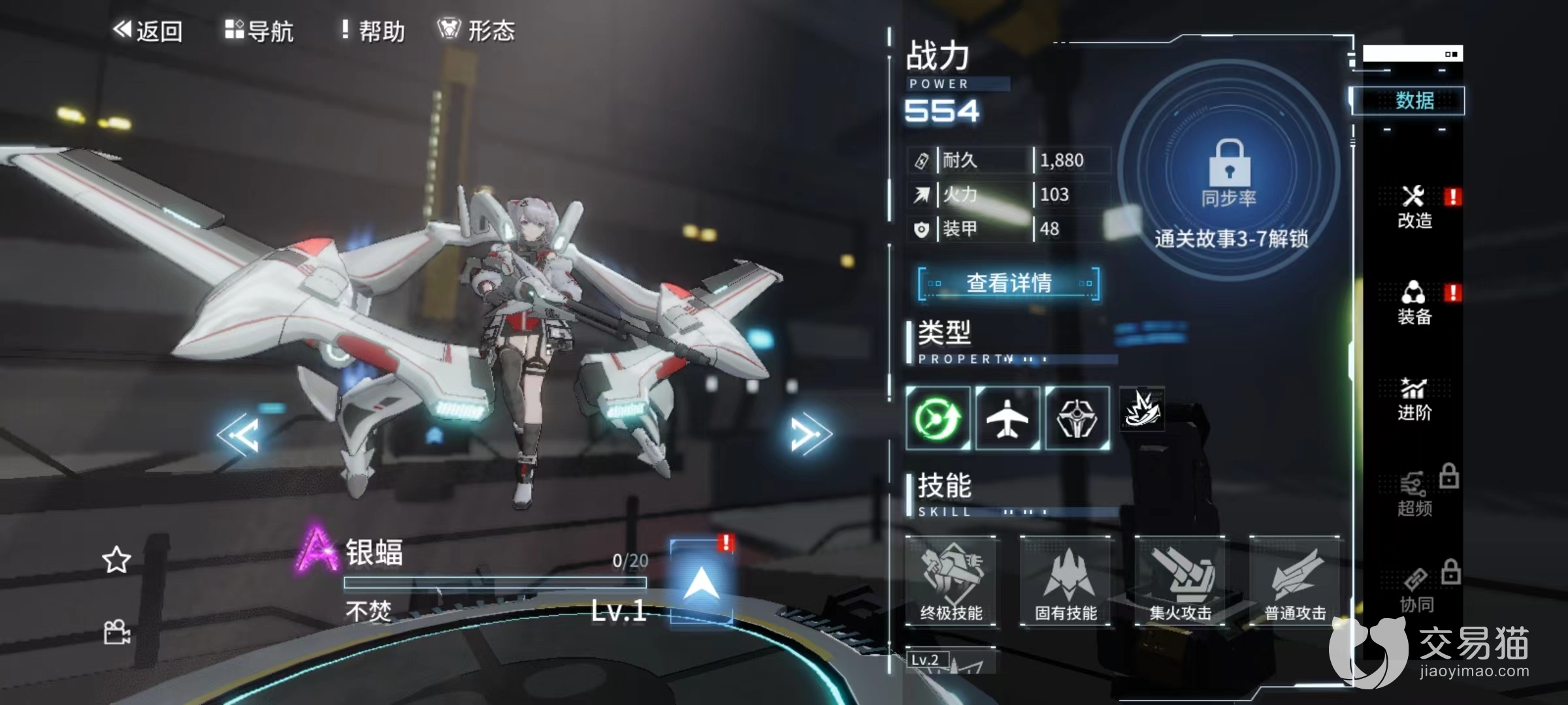 从战场优势来看,确实对得起银蝠这个名称,在空战时有额外属性提升,是自己的主战场。职业定位为突击型机体,这就是非常擅长的攻击类型,利用火力超载还能够提高我方伤害,共振驱动类型能够在攻击时候降低目标攻击速度,也是有效的削弱。终极技能火力覆盖,输出目标为全体敌人,伤害上中规中矩,但是有几率能附加劣化效果,劣化属于异常状态之一,当目标处于此状态下时,接下来受到伤害将按照比例提升。该效果命中之后能持续三秒钟,初始命中率50%,受到很多方面的影响。