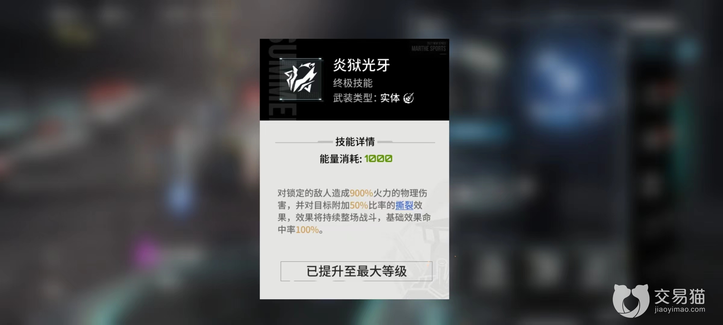 终极技能炎狱光牙,锁定敌人后造成高额物理伤害,同时能添加撕裂效果,撕裂是按照比率降低受到治疗。例如该技能所造成比率为50%,也就意味着对方在承受治疗时候只有50%效果能够生效,如果加血量为100,就是50点实际数值恢复。这对于很多战斗场景来说都是关键技能效果,显著降低对方生命值回复,尽快结束战斗。而且添加撕裂之后将会持续整场战斗,没有时间限制。