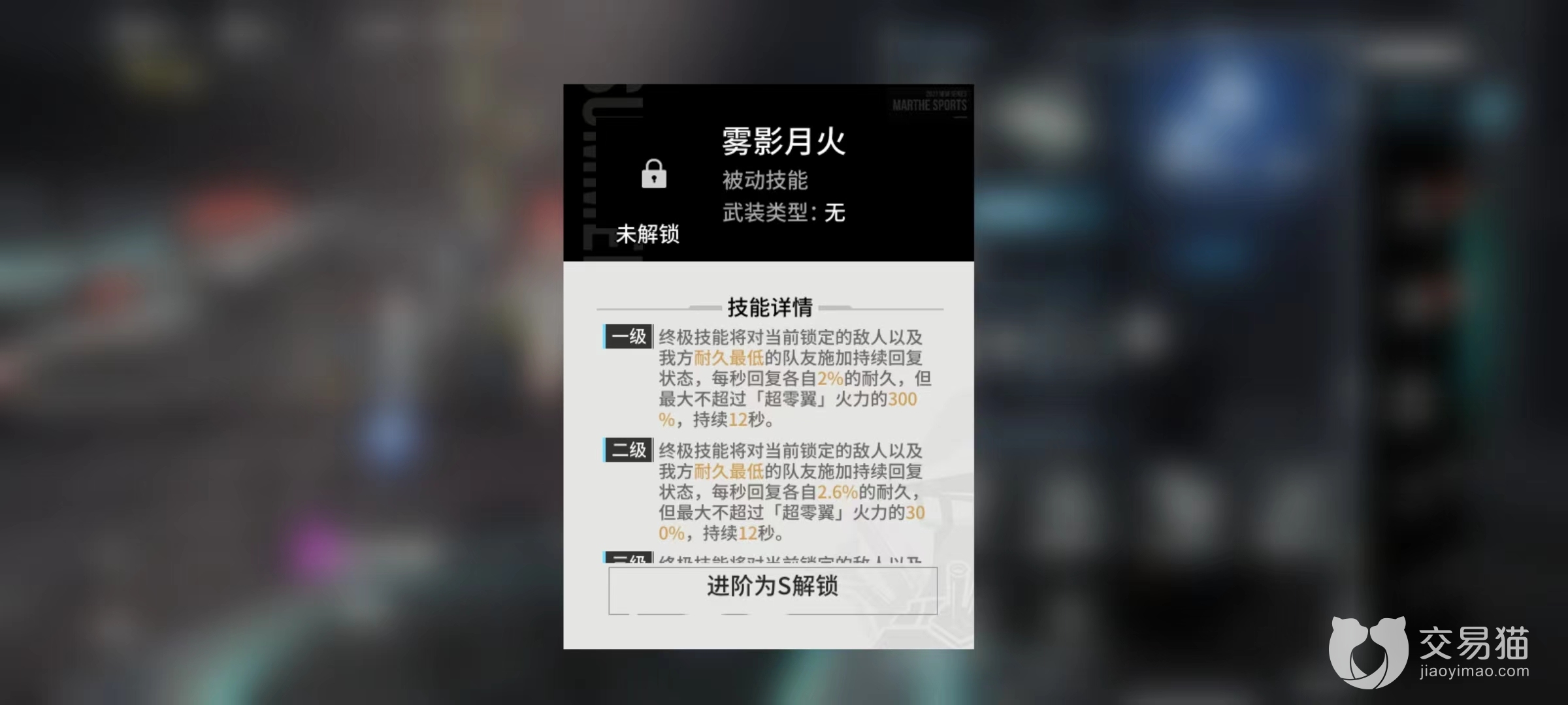 固有技能为10秒钟冷却时间的一次物理伤害,没有其他附加效果,附加效果较少也是这一类角色通病,另外一项弱势就在于自身只有两个被动,比S级要少一个。第1个被动提升自身异常状态增幅,对于辅助来说还是非常关键的,第2个被动则是提高终极技能效果,能够对当前锁定敌人以及我方血量最低队友进行恢复,每秒钟都会按照比例恢复耐久值,持续12秒钟。虽然两方都加血,但是有着撕裂效果,所以依然是我方占据优势,不用担心会给敌人加太多血量。