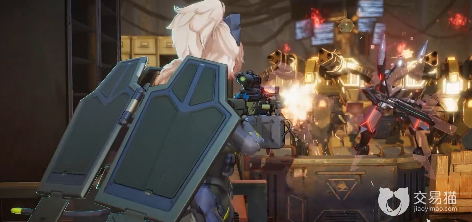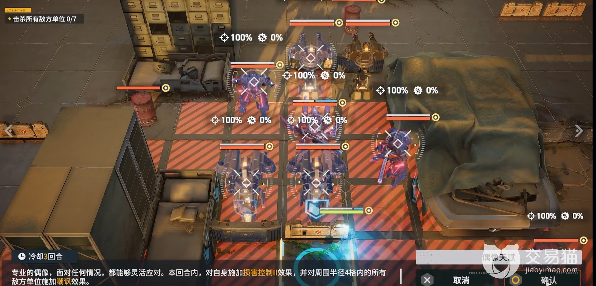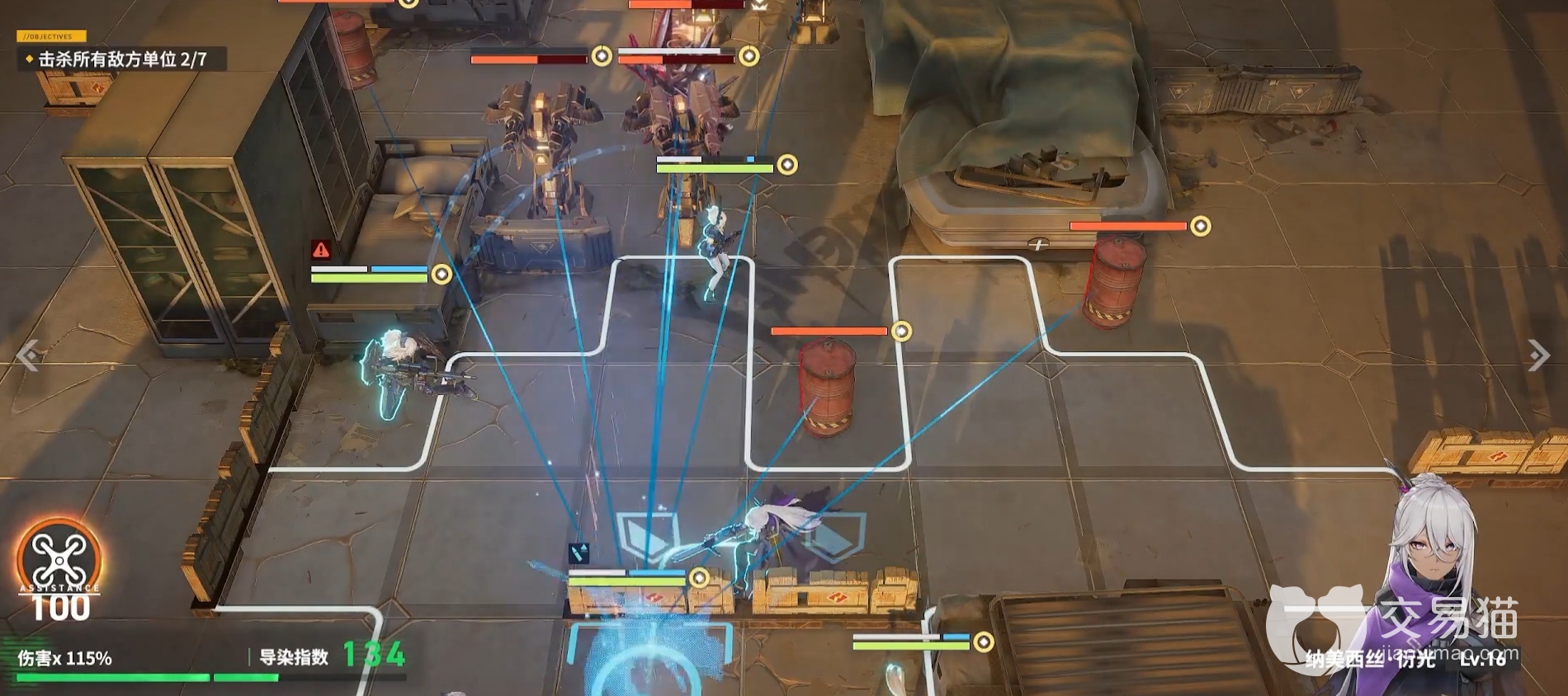玩家需要面对的敌人种类并不多,只有三种,分别是刀锋SWAP、重机枪模组、准星,不过它们的数量比较多,所以打起来还是比较费力的。这一群敌人的特点就是伤害范围大,而且它们喜欢集中火力去打一个人形,而且它们的整体位置比较集中,因此玩家的战术可以是分散它们的火力,逐个击破,因为事实上这些敌方单位的强度并不厉害,所以单个打起来还是很轻松的,最好先把刀锋SWAP或者准星消灭掉,前者的伤害高,后者有护盾防御,还可以给己方施加点眩晕的debuff。