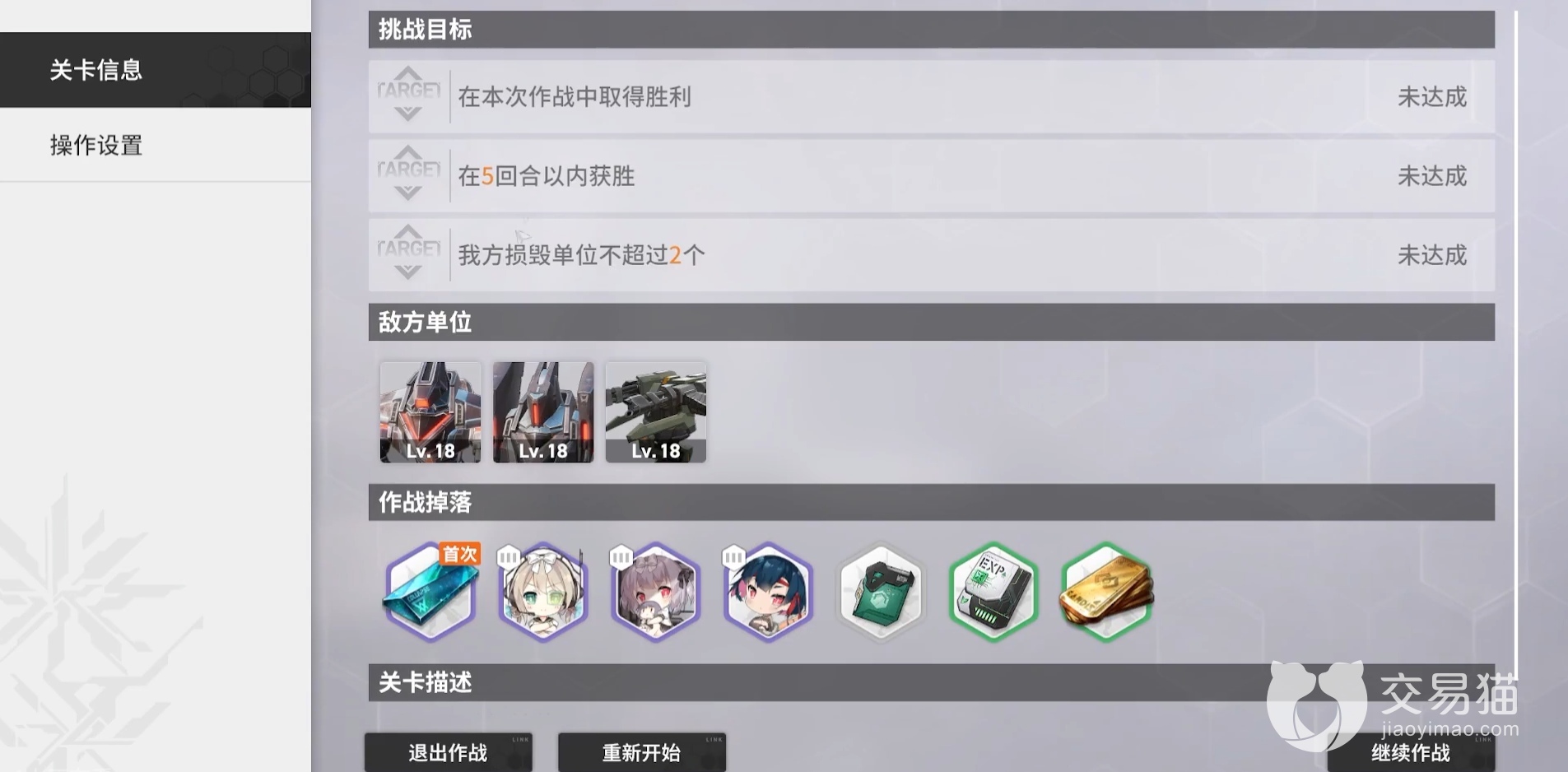 这一关卡对于人形的等级是有一定要求的,小编建议玩家把人形升到20级的时候才开始挑战会比较好,不然获胜的几率会非常小。如果玩家想要获取三星通关的话,需要满足五回合内击败敌方且己方单位的损毁人形不超过两个的条件,还是挺难的,不过单纯想要通过这一关卡的话,其实还蛮容易的。小编推荐玩家搭配的阵容是维普蕾·ETs型+佩里缇亚·共格+闪电·ETs型+纳美西丝·衍光。