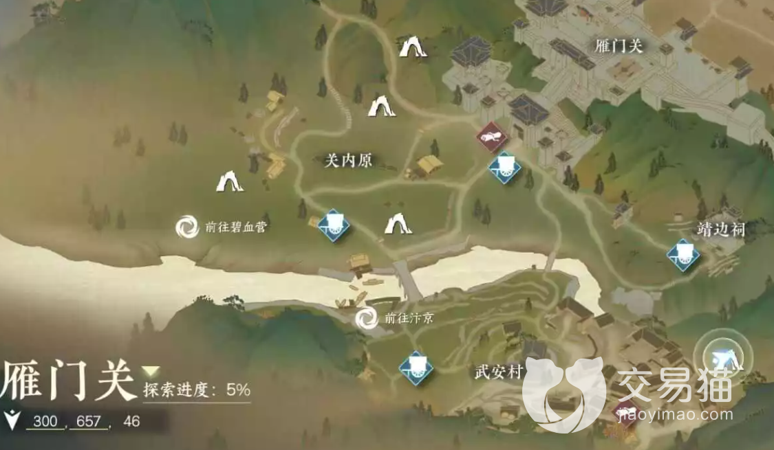 具体坐标位置是雁门关地图300,657。进入山洞后,依次使用相应属性的探索技能,解锁相应的机关。比如说水系蓝色机关就用水系技能进行激活,然后继续往前进再回来,用火焰焰机关继续激活。此类推将四个系火木水土四个技能轮流使用一遍,之后便可以来到最终地点。
