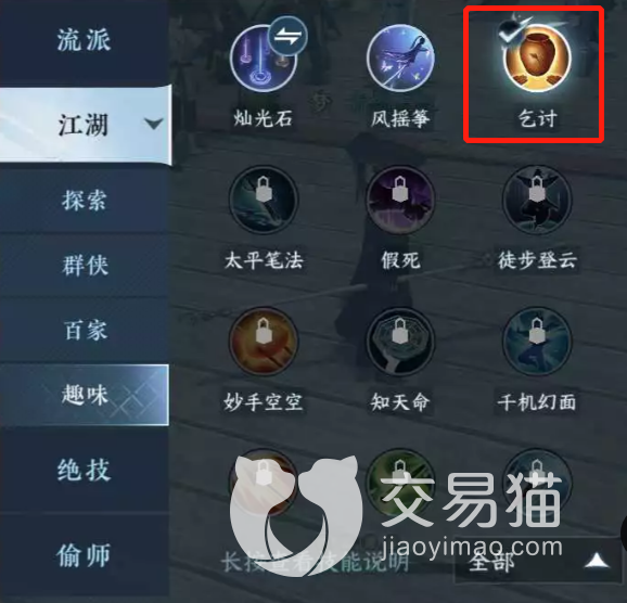 丐中之丐是一个入门的奇遇,就算大家完成这个奇遇有人不会有奖励,但是不做这个入门奇遇的话,后面的考核奇遇是没有办法触发的,想要触发的玩家首先需要去乞讨,乞讨在游戏中是需要大家提前学习的一个趣味技能,将这个技能换上就可以去乞讨了。